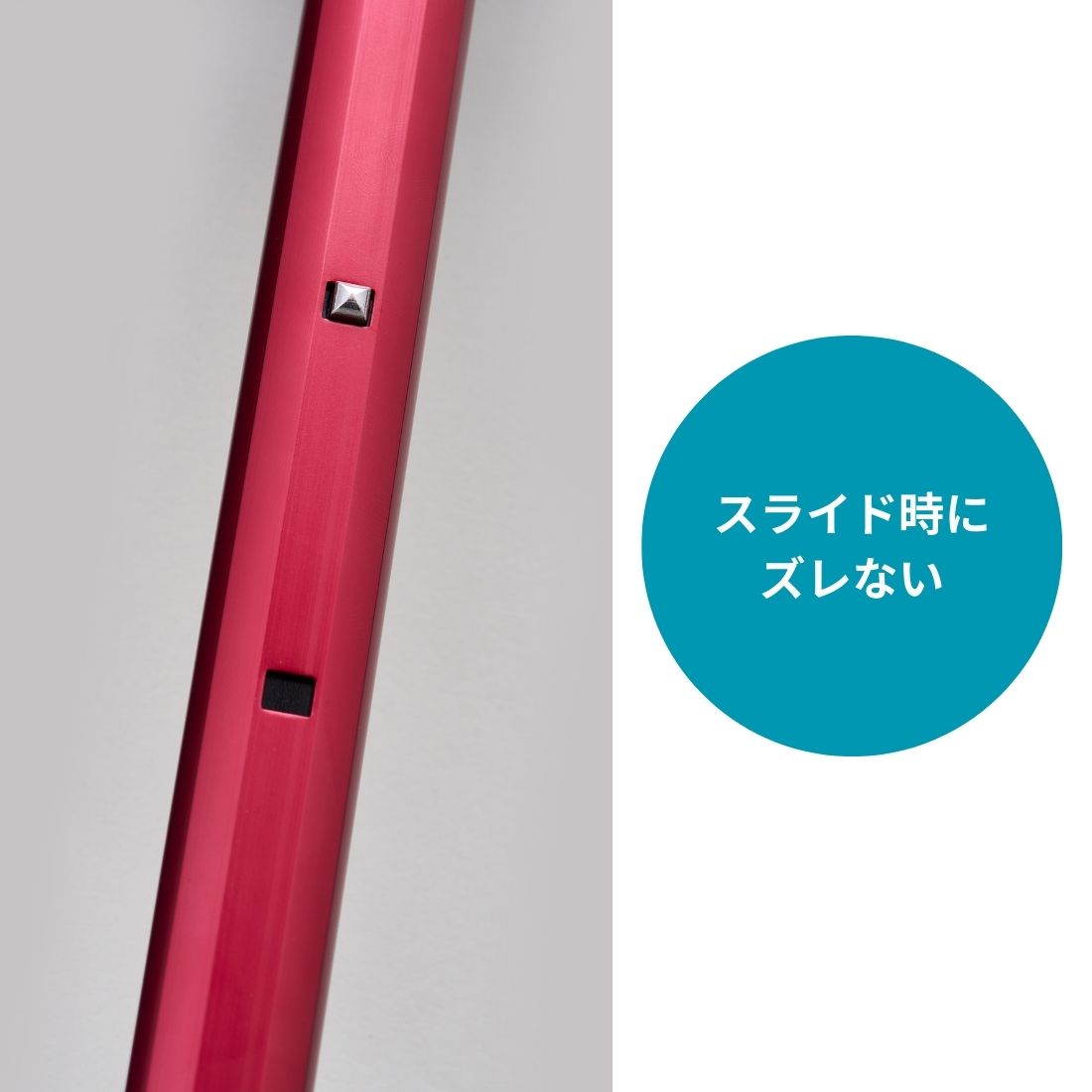 平型シャフトと四角ボタンの組み合わせで回転を防止しスムーズに伸縮します